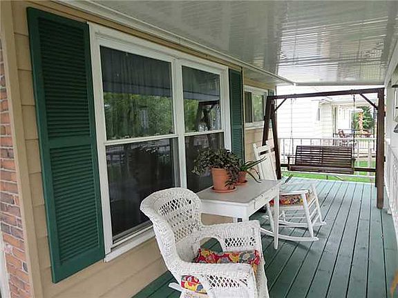 Charming Point Place home with a spacious family room features wood stove with brick wall & french doors which lead to wood deck. Dining room which could be a living room. Finished basement has an additional kitchen. Glass block windows and bathroom adding to living space.18 Ft. above ground pool. Garage with attached cover porch. Newer furnace /Central air added in '14. Front covered porch.