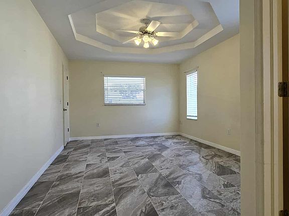 Inside, enjoy a combined living/dining area, eat-in kitchen with breakfast nook and patio access, and a primary suite with tray ceiling, walk-in shower, and closet. The split plan offers two more bedrooms for versatility.