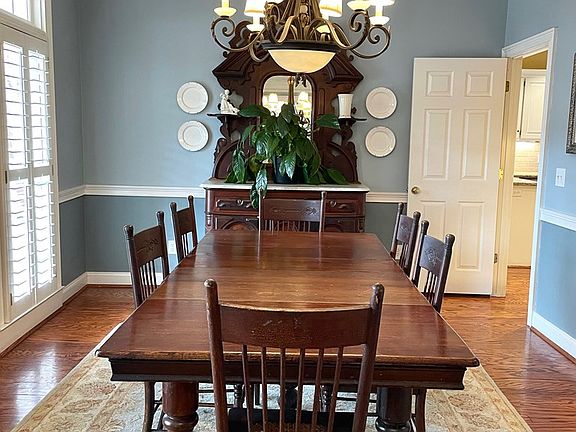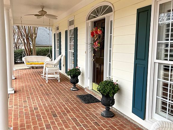 This 2710 sq foot, 4 bedroom, 3.5 bath home has a truly unique colonial inspired design that is both stately and simple. The curb appeal is fabulous. The fact that it's located at the end of the cul-de-sac makes it especially attractive. The huge brick front porch spans the entire length of the home and is anchored on either end by hanging wicker swings inviting friends and neighbors to visit. The primary bedroom suite is huge and is located on the main level. There are his and hers walk in closets and separate vanities on either end of the bath area. 3 bedrooms and 2 baths are upstairs. Enjoy the real wood burning fireplace on cold days, lounge on the covered back porch on warm days. The lot is large with plenty of playing room for kids of any age. Brand new 30 year architectural shingle roof just installed. New hvac to be installed prior to closing. This home is located in the highly desirable Maple Ridge subdivision which offers golf, tennis, & 2 swimming pools.