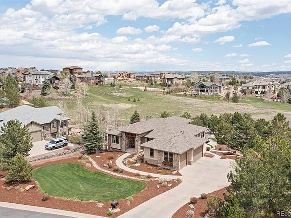 This stunning ranch walkout will capture your heart from the moment you lay eyes on the sophisticated stucco/stone facade and water feature right at the entrance! This is heightened living at its finest - on the main level, plentiful windows bring the beautiful Colorado outdoors into focus, with a grand family room that will draw your loved ones together. Featuring high ceilings, a central fireplace, and open to a delightful kitchen with large center island, stainless steel appliances and walk-in pantry, this home is a place to build lifelong memories. The main floor primary bedroom offers access to a rear deck, spa-like bathroom with soaking tub and large walk-in shower. Cozy up on cold nights next to the fireplace right in the master bedroom! A home office with wooden built-ins and crown molding make work-from-home more appealing than ever. On the lower level, find three spacious and comfortable secondary bedrooms and two bathrooms. Take the party to the lower-level walkout, complete with a stone-accented wet bar, additional fireplace, media space with included projector and screen, and plenty of space for pool, poker, and more games. An additional finished bonus room is perfect for a home gym, hobby room, or extra office. Outside, embrace the Colorado lifestyle with a built-in bar-b-que, outdoor fireplace, hot tub, basketball half court, and children’s play set. This home also boasts a three-car garage, a short walk to the Pradera clubhouse for golf, tennis, and activities… and all on one of the most beautiful streets in Pradera! Don’t miss this opportunity, this one will go fast!