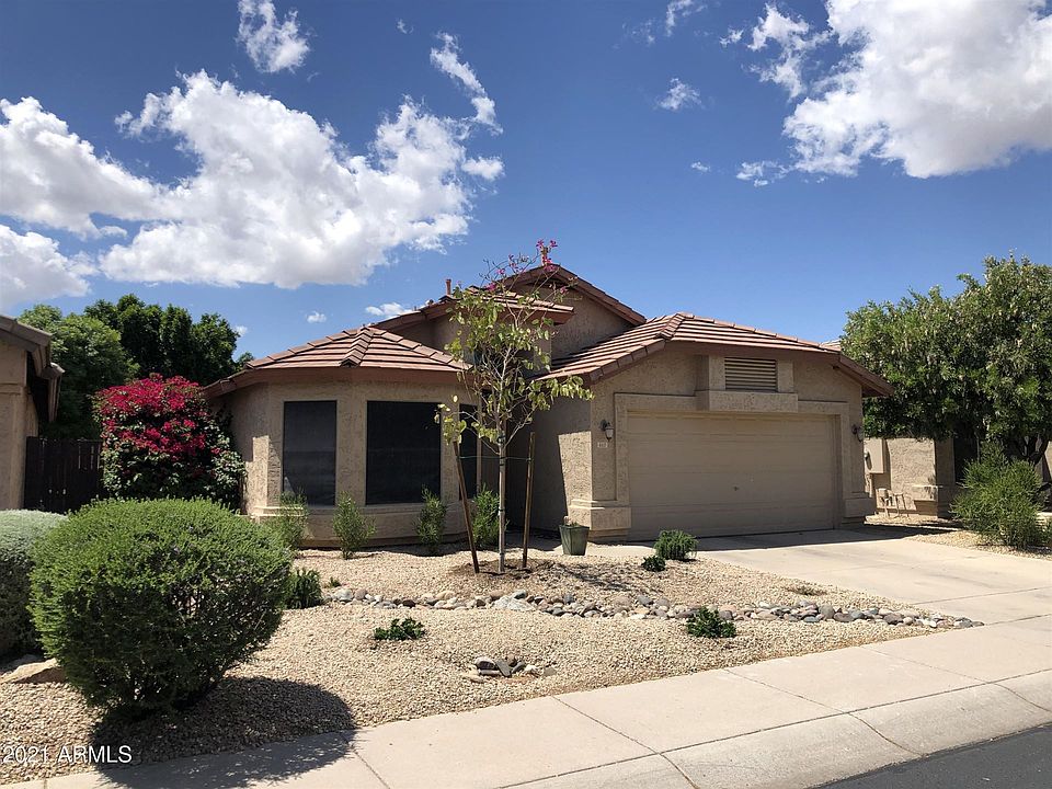 Amazing Desert Ridge home! Spacious 3 bedroom, 2 bathroom home on a quiet neighborhood street located within walking distance to Paradise Valley elementary and middle school. Single level home with single level houses on both sides and directly behind for added privacy. Open floor plan with living room/dining room and kitchen/family room. Updated kitchen for the family chef with new cabinets, quartz countertops, kitchen island, upgraded stainless steel Whirlpool appliances and gas range. Private master bedroom with ensuite bathroom with separate shower and tub, 2 sinks and large walk-in closet. Resort-like backyard with covered patio, shade trees, tasteful landscaping, fire pit with seating and beautiful pool with water feature. Vaulted ceilings, window treatments, 2 car garage...