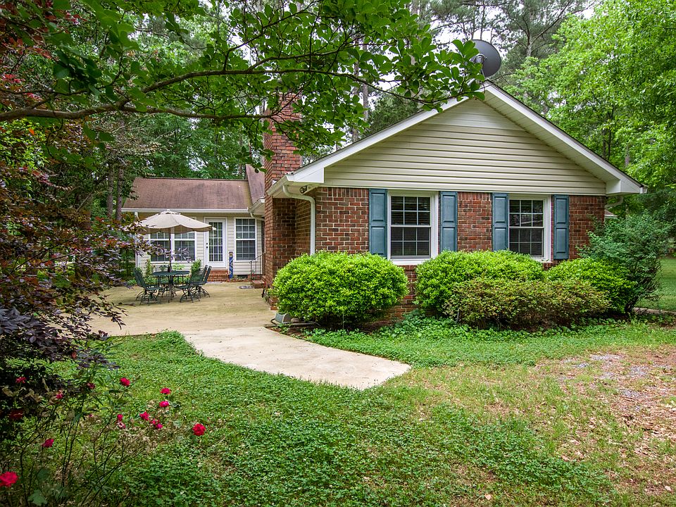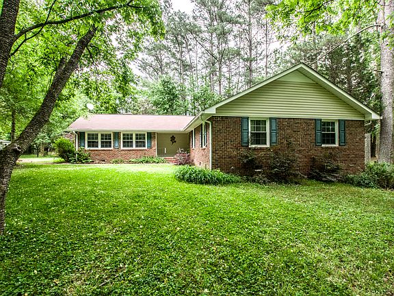 PICTURESQUE PRIVACY! Rustic paradise secluded from the street by towering trees and an open back yard for entertaining on a 1.75 acre lot. This 3 bedroom, 2 bath home features hardwood floors throughout, very large family room with fireplace, open eat-in kitchen, a formal dining room that seats over 12 people, a large sun room off of the kitchen. Sit and enjoy looking out over your back yard!