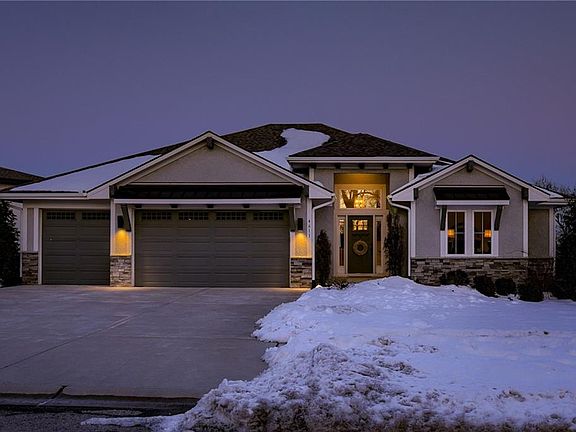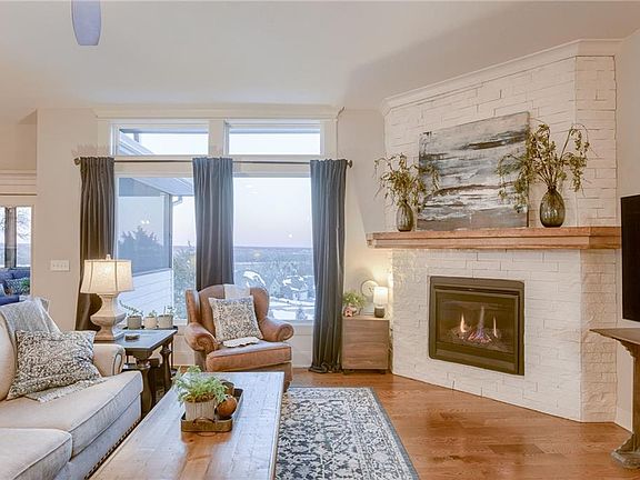 Open the front door to this stunning reverse with views to Downtown Kansas City. Grand entry with ceiling detail. Nestled atop this neighborhood in western Shawnee. Gorgeous kitchen with neutral colors, perfect for entertaining or enjoying a quiet glass of wine on the screened in porch. Kitchen opens to great room with stone fireplace. Primary bedroom is a spacious retreat. Primary bathroom with shower and custom makeup area. Primary closet with pulldown rods for extra hanging space. Plumbed for a tub if you so choose. Two bedrooms on the lower level with an amazing 2nd living space w/wet bar and a bonus space under stairs, perfect for workout room or office. Paver patio with firepit overlooking the large backyard. Stop and admire your neighbor's tranquil pond. Conveniently located near a host of amenities and situated within the award winning De Soto school district, this home also falls within the sought-after Mill Valley High School, adding to its appeal. You will not want to miss this one. Measurements are approximate and need to be verified by buyers or buyers agent.
