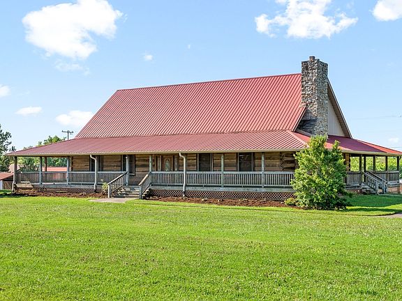 Beautiful well built log cabin farm on 6+ acres of level, fenced land with security gate and cross-fencing, including several pastures. Bring the cattle, sheep, goats, or horses! The home features 3 spacious bdrms, 2.5 baths, with the primary bdrm on the main floor. Enjoy open soaring ceilings with wood beams, large windows, and a wood-burning fireplace. The open concept kitchen offers tall custom cabinetry, gas stove, custom range hood, and ceramic backsplash. The utility/ mud room has ample cabinetry. The wrap around porch is huge! Florida Room overlooks the backyard pastures and trees. Home has a new HVAC unit for the main floor. A 37'x17' room with double doors in basement is suitable for use as office space, storm shelter, storage or potential bonus room. Property includes large concrete driveway, fruit trees, smokehouse, an attached garage, detached garage/ shop, shed (chicken house), barn, rv port, and carport. Motivated Sellers! Convenient location to schools, shopping, and I-24 to Nashville.