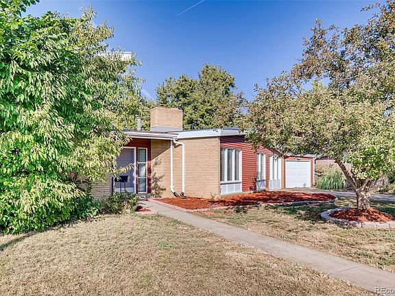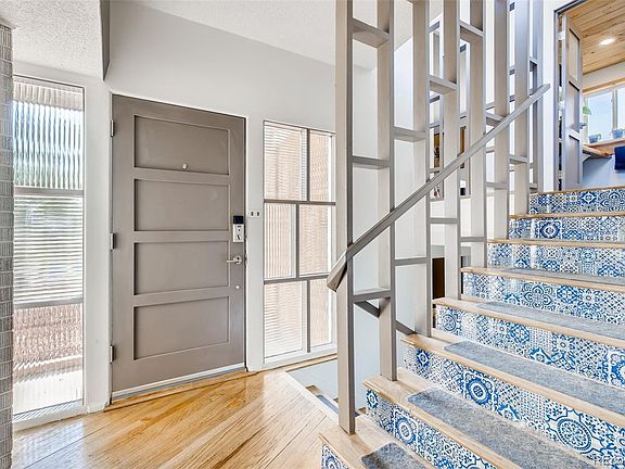 This mid-century gem is nestled on over a quarter acre lot, featuring classic mid-century design and custom features and finishes. The stunning sun drenched living room has angled brick walls, a 3-sided fireplace, large windows, louvered venting, hardwood floors, and opens to the cozy den. Kitchen features newer stainless appliances, 2 disposals, hot water dispenser, and custom wood counters. Split level design with 2 bedrooms and remodeled full bath upstairs, and 2 bedrooms and remodeled 3/4 bath on the lower level. Baths feature built in bluetooth speakers. Backyard covered patio, covered sunroom, outdoor speakers, and in ground pool beneath the decking. Imagine how you would use the new workshop/home office/playhouse structure in the backyard. 1-car attached garage is extra deep with a workshop area and storage. New furnace and AC. Wonderful opportunity in desirable Wheat Ridge!