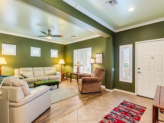 This quality built Pulte home will impress you beyond... absolutely EVERYTHING you could ask for and then some... Neutral tile & plank style tile flooring throughout! Gorgeous high end granite, upgraded 42'' cabinetry, SS Appliances! Separate Den/Living Room, Crown molding throughout, plantation shutters, Remodeled baths,. 2nd bedroom has custom built murphy bed with bookcases & storage, just beautiful! A/C replaced in 2018! Exterior improvements include artificial turf back yard, travertine & cool deck patios, gazebo, paver walk & additional driveway... heated pool, water fountain, RV gate! Solar system reduces electric bill to near nothing, seller will provide all info in docs tab... don't forget the amazing 3 car garage!