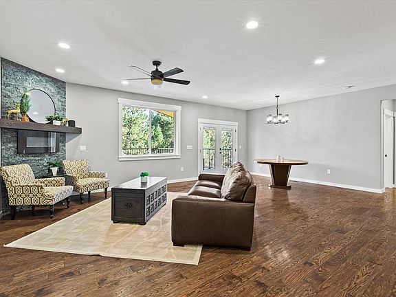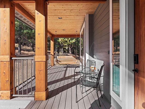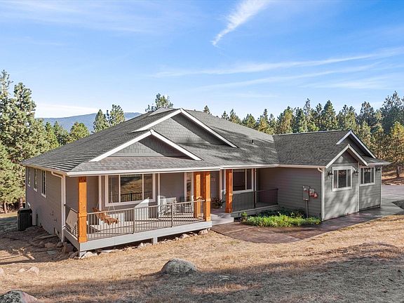 Introducing this gorgeous home on acreage in an upscale neighborhood in Greenacres WA. This beautiful home is very spacious with two living rooms, 6 bedrooms, 4 bathrooms, formal dining room, an office and a rec room. The front entry is amazing with a covered porch, metal railing and a swing. The main floor area is just lovely with a cute fireplace/entertainment wall, 3/4 inch real oak hardwood, impressive kitchen and a view to the forest. Kitchen has all custom cabinets, induction cook-top, double wall oven, island, granite counters and tile backsplash gives the home a very luxurious feeling. This beautiful home was built with attention to details, with plans to retire in, built to last. Exterior walls have both spray foam insulation and a blow-in insulation which creates a solid structure and a high insulation R value. Solar panels on the roof maximize energy efficiency and provide green energy to the home. Unwind down in the evening in your barrel sauna and enjoy the serenity of this private property.