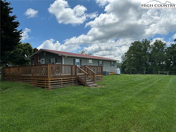 This idyllic mini farm is located in a beautiful valley just off the Blue Ridge Parkway in the Purlear area of Wilkes County, with long range and pastoral views in all directions. With two ponds, a bold stream, and a spring, this property has lots of farming options. The remodeled home features one level living, three bedrooms and two baths on the main level, a large wrap around deck for grilling and relaxation, and a fenced backyard for the pets. The completely restored 1893 antique log cabin is original to the property, and is currently being used as a vacation rental. There are four outbuildings on the property. The 50' X 20' building closest to the home features three garage doors, has a concrete floor, is heated and cooled, and has WIFI. It has been used as an office, and for storage. The 110' X 30' chicken house has been updated with new windows and roofing, and is used for hay and equipment storage. The equipment shed features a concrete floor in the main part, with shed roofs on two sides for tractors and equipment. 220 power has been buried to the shed, but is not yet installed. The 24' X 48' metal barn at the back line of the property has a concrete floor and is currently used for wood storage. Wood does not convey. There is also a 20'X 20' wired greenhouse with a gravel floor that has never been used. Step back in time, escape the hustle and bustle, and come take a look at this unique property today!