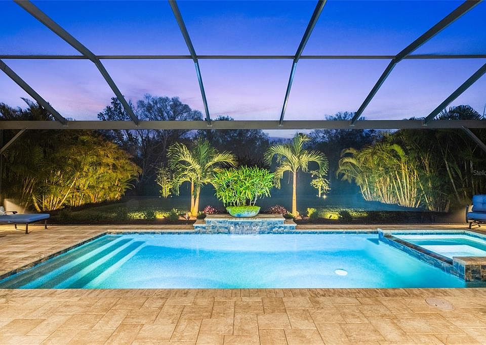 - Pool features: Child Safety Fence, Deck, Gunite, Heated, In Ground, Lighting, Screen Enclosure