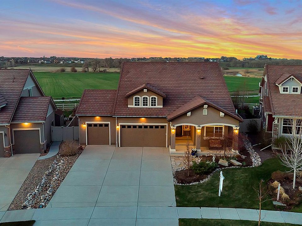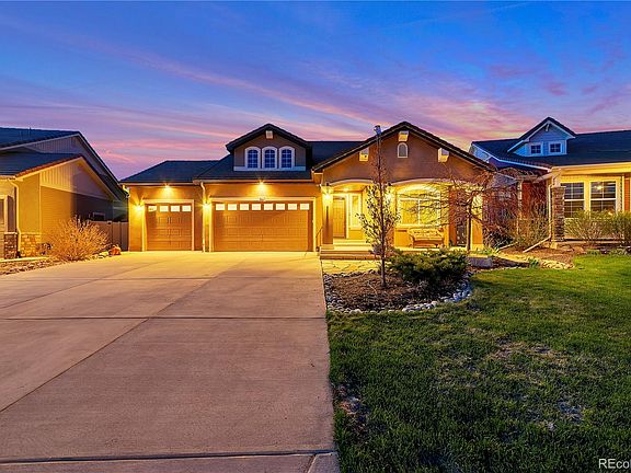 Stunning ranch with endless upgrades! This barely-lived in Johnstown home boasts trey ceilings, hardwood floors, upgraded lighting & beautiful finishes throughout. Home cooks will love the granite counters, custom cabinetry, gas range, double ovens, filtered hot & cold water in sink, oversized island and the flow into the spacious great room. This property features 2 gas fireplaces & an additional electric fireplace in the master. Retreat to your huge master suite with ensuite 5-piece bath, walk in closet & views of the Rocky Mountains. Built-in surround sound system inside & out. Ring pro camera system. Custom window well. Entertain year round in the finished basement with wetbar or the expansive outdoor space. Over $55k spent in professional landscaping including firepit, covered patio, pergola, & drip system through out. Home backs to unobstructed views of mountains & open space. Structural upgrades including exterior stucco, 4' expansion on back, 5' on front & 2' on sides. 3 car garage w/ work bench. Get everything & more in this custom home!