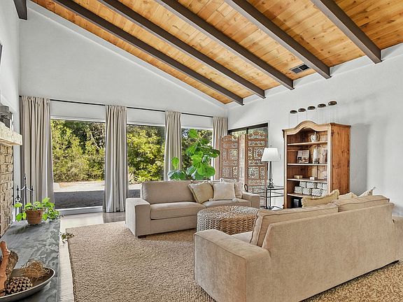 This timeless, single-level, 4-bedroom Spanish-style home offers the ultimate privacy in the picturesque Rancho Del Mar community, one of North County's premier neighborhoods. Nestled on a tranquil 1-acre park-like hillside lot with mature landscaping, this home features an ideal layout. The formal entry leads to a spacious living room with high, open-beam ceilings and a cozy fireplace. A formal dining room, which can double as an office, complements the beautifully remodeled kitchen with stainless steel appliances, granite countertops, and a sunny dining area. The extended family room adds even more living space. The primary suite, located in its own wing, boasts stunning hillside views, a large walk-in closet, and a luxurious bath. Two additional bedrooms and 1.5 baths share the same wing, while a private guest suite with its own bath is tucked away on the opposite side of the home. Other highlights include a separate laundry room with a washer/dryer, expansive sunlit patios, and a sprawling backyard, perfect for outdoor entertaining. The spacious two-car attached garage provides ample storage. Ideally located just five minutes from Del Mar, Solana Beach, Rancho Santa Fe, and top-rated public and private schools, this home offers the perfect blend of convenience and serene country living. Available for a 12-month lease. Don't miss the chance to view this extraordinary home!