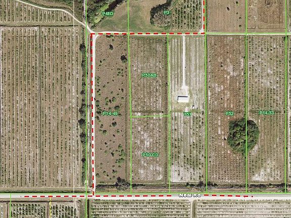 "High Meadows Grove" is a 10 acre former citrus grove located in the former Orange Co & American Agronomics citrus development in east Charlotte Co. This is a square 10 acre block of old Valencia citrus consisting of four - 2.5 M/L each. The location is perfect for a home site with a new grove or even another income crop. The property can be a great recreational property with miles of roads for riding & there are areas on the property ideal for wild hog & turkey....maybe deer. The land is ditched on all sides for maintaining the water table to raise citrus or other crops. The elevation is about 50-60 feet. The area is being sought for "big out & away home sites" away from the big cities of South Florida. If seeking a rural & more relaxed lifestyle, then this acreage is a valued asset. Two homes are in the general 1 mile area. Electricity is on the north side of the property & is the most important factor when acquiring a rural property. Most rural properties in the area do not have electricity & obtaining electric service is prohibitive due to the tremendous cost of the pole lines construction which can be in the thousands of dollars. Access is via Neal Road & by well-maintained internal access roads coming from the east & south of the property. In the past the grove was maintained by a Grove Service but currently is not under any maintenance agreement. The 10 acres is in the East Charlotte Drainage District & there is an annual fee assessed through the annual tax bill.