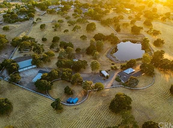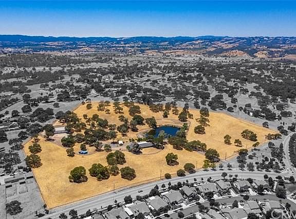 Once In A Lifetime Opportunity! This stunning 25+/- acre parcel lies just outside Paso Robles city limits, and has not been on the market since the highly desirable Spanish Camp community was developed. The classic country setting offers rolling hills scattered with gorgeous mature oak trees, fenced pastures, an amazing pond, and incredible views! The 5 bedroom, 4 1/2 bath, single level 3,500+/- sqft home provides some mid-century architectural elements, ideal for those seeking a remodel to make it their own. Additional living space includes a separate 1 bedroom/1 bath 750+ sqft guest cottage and a single-wide mobile home. The 4,300+ sqft barn contains 78' x 28' of shop space with large roll up doors, plus a spacious breezeway, 7 stalls, and a tack/storage room. This wonderful property is conveniently located near shopping, schools, golf, walking/biking trails & more. The time is right to make this bit of iconic Paso Robles real estate yours!