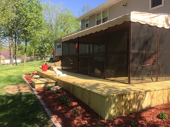 4 BR Mt. Zion Dist. Tri-level on great lot backing up to woods!!. Totally remodeled inside and out! Walk in to the foyer with built in bench and rounded stair case. Fantastic family room with WB Fireplace and wet bar on this level with slider to deck in the private and fenced back yard. Also a door from the laundry and 1/2 bath area that is convenient for kids and pets with muddy paws! Updated kitchen with all new cabinets, counter tops and back splash. Common bath with subway tile tub/shower. Large master with updated bath too! Big living room open to dining room with space for the family on holidays!. Great home for entertaining guests or just relaxing with the family. Knockdown ceiling texture. New Roof 2016. Water heater 2018.