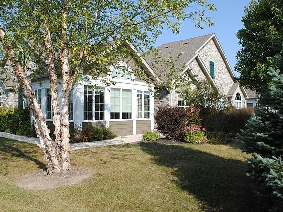 If you want to live out of town but yet have quick and easy access to all of the area's amenities, then this property is for you. Vaulted Ceilings and lots for windows in this popular Canterbury floor plan offer 1860 SF of space, featuring two(2) bedrooms, den, and delightful sunroom in an open and inviting floor plan. This offering was recently completely repainted and is ready to move into. It includes a laundry room with sink and adjoining storage room, floored attic, and private patio for the best in maintenance free living. Upgrades include hardwood in living room, dining room, and den, plus stainless appliances and tile backsplash in kitchen. The water heater, washer/dryer, and master carpet have been recently replaced. HOA dues include all exterior maintenance, clubhouse, pool, exercise room, trash pickup, lawn care, and snow removal. This property won't be available long so call now for an appointment to see for yourself.