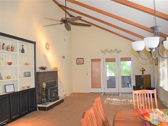One step into the large foyer, and youll be glad you to came to see this one. The wonderful floor plan is set up for todays lifestyle. To the right is the updated kitchen with newer countertops and backsplash, wood laminate flooring and a breakfast nook. To the left of the foyer is a huge bedroom doing double duty as an office/den. The more formal dining area is in the great room with vaulted ceilings, a fireplace and door to the rear deck. Both the master bathroom and the 2nd full bathroom have dual vanities. The master bedroom is spacious with a large walk in closet. First floor laundry closet with sink. Eastpointe is a wonderful neighborhood with tree lined streets and walking paths and acres of common land on which you may roam. Stark Parks walking trail is close by, as well as Gervasi Vineyard! This home is not a condo, it is an attached single family home, and offers an easy to maintain sized yard. The HOA only maintains the common areas. Sells AS IS.