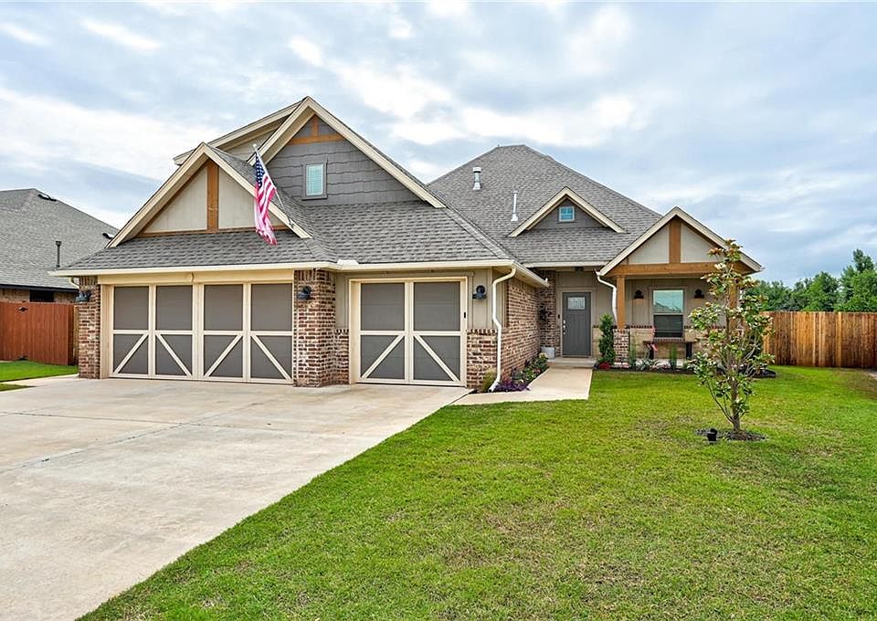 Spectacular nearly new home within new a construction neighborhood in the heart of Mustang! This home has been meticulously maintained and it shows! All 4 bedrooms and two bathrooms are on the first floor, with an additional bonus/theatre room with its own bathroom on the second floor. Features include gorgeous wood tile flooring through entire first floor, granite counter tops throughout open-concept kitchen and all bathrooms, stainless appliances, large walk in pantry and stunning gas fireplace with built in shelving/seating surrounding it! Feel at peace knowing there is a new generator and storm shelter as well! Large primary suite with ensuite bathroom featuring dual sinks, expansive walk-in closet, jetted bathtub, large walk-in shower PLUS laundry room access! Back yard feels like an oasis as it backs up to a serene green belt/field. Don't miss your opportunity to call this gorgeous modern farmhouse YOUR home! 2022-06-07