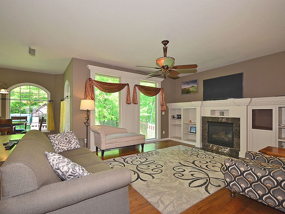 Cul-de-sac in Carriage Hills Estates that backs to a private treed space! North Kansas City School District! This 2 story open floor plan features hardwood floors, a large kitchen w/ lots of cabinet space, and a breakfast bar & walk-in pantry. Separate eat-in area off the kitchen. Hearth room has built-in bookshelves, gas log fireplace and floor to ceiling windows to let in the natural light. The winding staircase leads up leads to the bedrooms. The master has it's own private balcony There is a Built-in desk/workstation on 2nd level. The winding staircase down to takes you to the recreation room and home theater set up. Outside there is a large covered front porch, new fence installed in 2020 and new paint throughout the inside, and an extra wooden deck in the back yard ready for your hot tub! HOA includes curbside recycle, snow removal, trash pick upswimming pool, and tennis courts. In-ground sprinklers and water feature in the home as well. Come take a look because this home won't last long! 2022-07-06