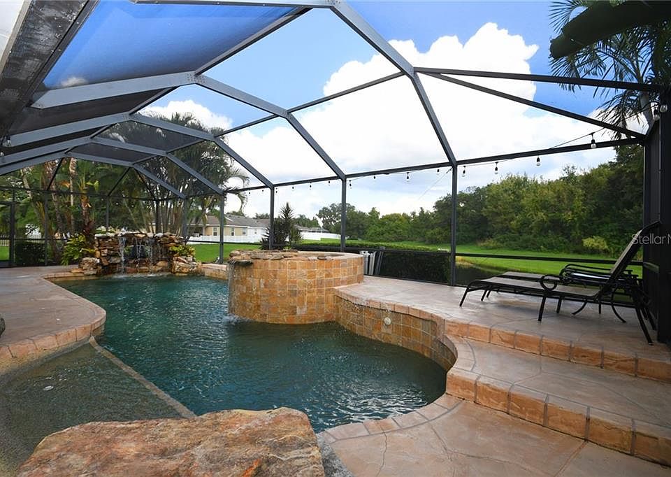 Come home to relax in this beautiful 3 bedroom, 2 bath, home with a custom salt water pool and spa overlooking a peaceful lake and preserve. Inside you will find a well maintained open floor plan with formal living and dining rooms. Updated kitchen open to family room with Granite counters and new stainless appliances. Large master bedroom with huge walk in closet and 2nd closet. Master bath with dual sinks, separate tub and shower. Nice sized secondary bedrooms and Bonus room, perfect for a home office or child's play room. Brand new exterior paint. Oversized 3 car garage. New salt generator, heater and pool pump. The home is completely wired for surround sound, including garage and pool, with volume controls in each room. Custom pool and spa offers the latest technology. See through rock waterfall to fire pit and color changing lights make for a beautiful backdrop in the evenings. This home is perfect for entertaining family and friends! Excellent location with easy access to I-75 and I-275, the Ellenton Outlet Mall and restaurants in this growing area. NO CDD's and low HOA fees.