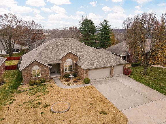 This well cared-for home features 3 bedrooms, 2-bathrooms and a 3-car garage with over 2,000 sq feet all on ONE LEVEL. It has an all-brick exterior, and is situated in the desirable Quail Creek community. Nestled in the sought-after SW Springfield and Kickapoo school district, this residence exudes warmth and charm. Upon entering, the high ceilings create an inviting atmosphere, leading you to a spacious living room with a fireplace with built ins and an open foyer. The adjacent formal dining room, features a large oversized window that floods the space with natural light. The eat-in kitchen features a bay window, additional dining at the breakfast bar, and abundant cabinet space. A split-bedroom floor plan offers privacy, with the large primary suite showcasing a vaulted ceiling, ensuite bathroom with a jetted tub, walk-in shower, dual sink vanity, and a generously-sized walk-in closet. Additional highlights include an all season room, covered back patio space, a spacious laundry room, coat closet, linen storage, and a large guest bathroom. Don't forget about the three-car garage which has plenty of room for all your storage needs. Enjoy the convenience of being minutes away from shopping, restaurants, parks, and the James River Expressway. The HOA offers a range of amenities, including a zero-entry swimming pool, a clubhouse, lighted tennis court, sand volleyball courts, basketball court and trash is included. Don't miss the opportunity to make this meticulously maintained house your home--schedule a showing today!