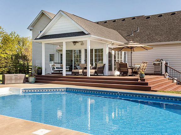 OUTSTANDING former Homearama home situated on over 1 Acre with in ground Pool, 3 Car Garage, and Sun Room in desired OLDHAM COUNTY! The Custom Design of this home is unbelievable! Must view this 3 BR (finished area in basement used as 4th BR), 2 BA , 2 HB, Great Room w/fireplace, Formal Dining Area, Lge Eat-in Kitchen with granite, custom cabinetry, appliances, breakfast bar, breakfast area, planning area, opening to the custom designed Sun Room w/heating and air unit, and a separate Laundry Room. The 1st Flr Master Suite boasts a Lge updated Master Bath with walk-in closet. Upstairs features 2 large BR sharing a full Bath. Basement offers huge Family Room with fireplace, custom built-in, Office area with built-in desk, nice size area used as 4th BR, Exercise Room, Half Bath and lots of