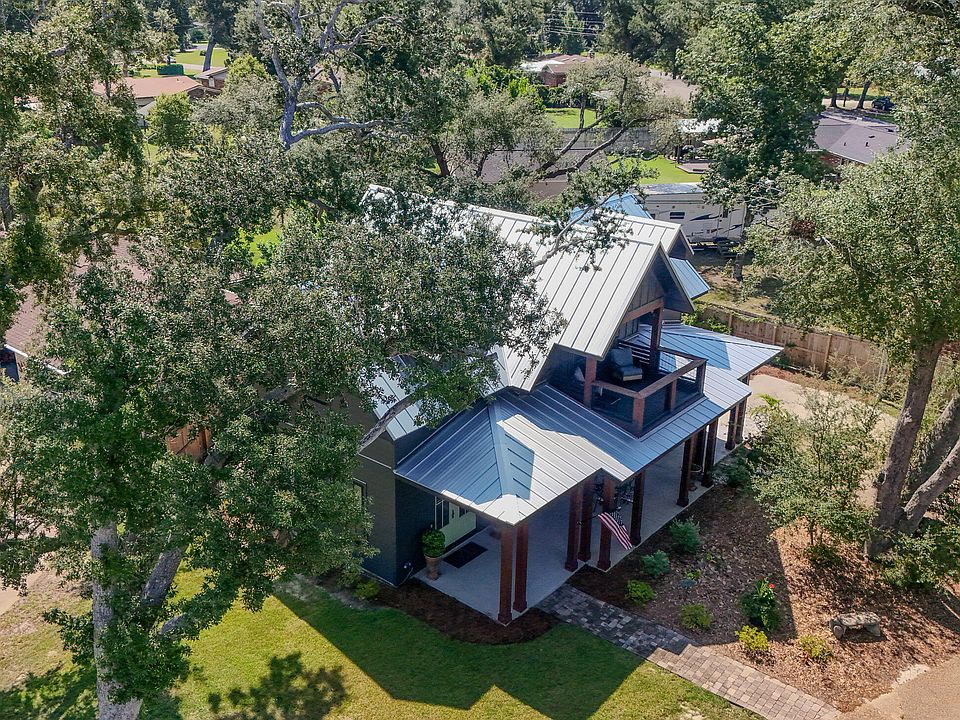 Welcome to this stunning custom home showcasing breathtaking water views of East Bay in Panama City, Florida. Thoughtfully designed with quality and comfort in mind, this residence features high-end windows and doors, soaring 10-foot ceilings, and an abundance of natural light that highlights every detail. A durable standing seam metal roof adds timeless appeal and peace of mind.