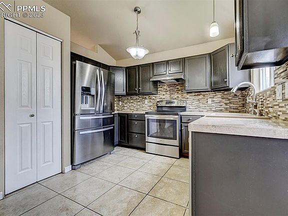 Welcome home to this delightful 4 bed 3 bath home that is truly a gem from the inside and out. Step through the front door to be greeted by cozy living area perfect for that home office or a second living space. The kitchen boasts beautifully upgraded finishes, stainless steel appliances along with the adjoining dining area making it perfect for entertaining friends and family. The lower level features a sizable living room with stunning hardwood floors and a gas fireplace to keep you toasty on those cold winter nights. The separate bedroom and bathroom located in the basement is that perfect hideaway for guests. On the upper level you will be pleasantly surprised by the very spacious master bedroom with a 5 piece master bath and two additional bedrooms. Outside, the backyard awaits with a Gazebo covering patio making it an ideal spot for al fresco dining along with the astro turf for low maintenance up keep. Located 10 minutes away from the Peterson Air Force Base and near schools and dining options, this property offers the perfect blend of comfort and convenience. Don't miss your chance to call this extraordinary property your new home. Schedule your showing today!