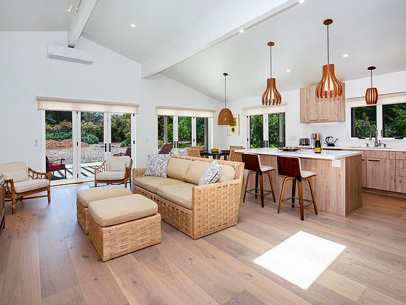 Discover the perfect blend of luxury & tranquility in this brand-new, beautfullly furnished 2 bedroom, 3 full bath plus an office ADU with a 2 car garage on 2 expansive, gated acres. Located in the private & esteemed Hope Ranch enclave, on one of the most beautiful lanes in the ranch, within a serene fruit orchard a with salt water pool and spa. The Primary Suite has a walk in closet & a spa inspired bath with a walk-in shower, heated floors & double sinks. The second bedroom is privately positioned with a queen bed and large TV. This immaculate cottage offers a Chef's kitchen with modern state-of-the-art appliances and vaulted ceilings throughout. The airy great room is surrounded by two walls of French doors overlooking a private acre of lush landscaping. Indulge in the comfort of heated bathroom floors, air conditioning, and remote-controlled shades. Elegant wood flooring runs throughout the home, adding warmth and style. Two spacious outdoor patios for romantic dinners under the stars or lounging in the sun. Idyllic indoor/outdoor lifestyle for which Santa Barbara is known. A brand-new washer and dryer are conveniently located within the cottage, alongside an attached two-car garage.