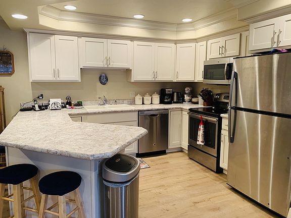 ONE LEVEL nearly new light and bright East End Condo. Easy living in this home which features Master bedroom and Bathroom plus an additional bedroom and bathroom all on one level. There is an open kitchen that leads into the living / dining area and a single attached garage.