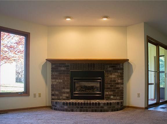 Backing up to green-space and a walking trail, this considerable first floor condo (1325sf excluding the basement) is move-in ready with newly updated light fixtures, carpet, vinyl, countertops and faucets. All the appliances (garbage disposal, microwave, stove, refrigerator, washer, dryer, dishwasher) were new in 2010 and are included. Additional benefits include: pull-out cupboards, large pantry, main floor laundry, a full and a 3/4 BA, gas log fireplace, bay window in front bedroom, window seat in master bedroom, 3-season porch and wonderful views of green-space from the many windows (all low-E argon and all new in 2012 except in the living room and the 3-season porch). Furnace/AC new in 2008. AHS warranty. Pets are welcome.