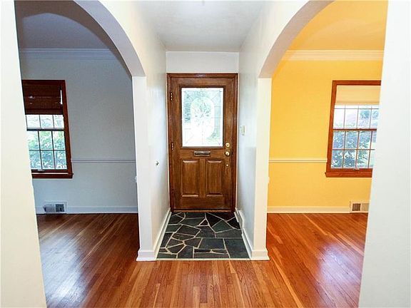 This 1930's home nestled back in a park like setting with mature landscaping, quality craftsmanship and updated for today's lifestyle is sure to impress! Gracious entry with new concrete walkway, plaster walls, hardwood floors, high ceiling, Pella windows flood the rooms with natural light, crown molding, updated kitchen with quartz counters, ample cabinetry, stainless appliances, open floor plan, great oversized deck over looking rear yard and path access right to the park from your back yard! 2 car garage + additional covered parking and plenty of space in the driveway too for friends and family/ Super location - quick commute to downtown Pittsburgh, public transportation, schools, Caste Village offering shops, restaurants, coffee, fitness, banking and so much more!/ Start the football season at your new address 4613 Baptist Rd with 3rd floor Steelers Rm! / HOME WARRANTY INCLUDED