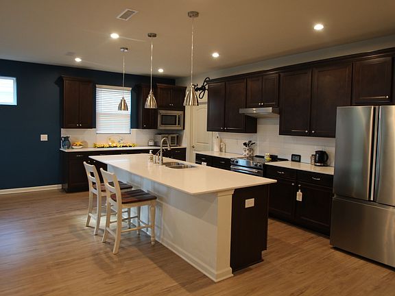 Stylish shaker cabinetsDouble vanityFantastic kitchen barLarge kitchen islandOpen floor planTiled walk-in shower
