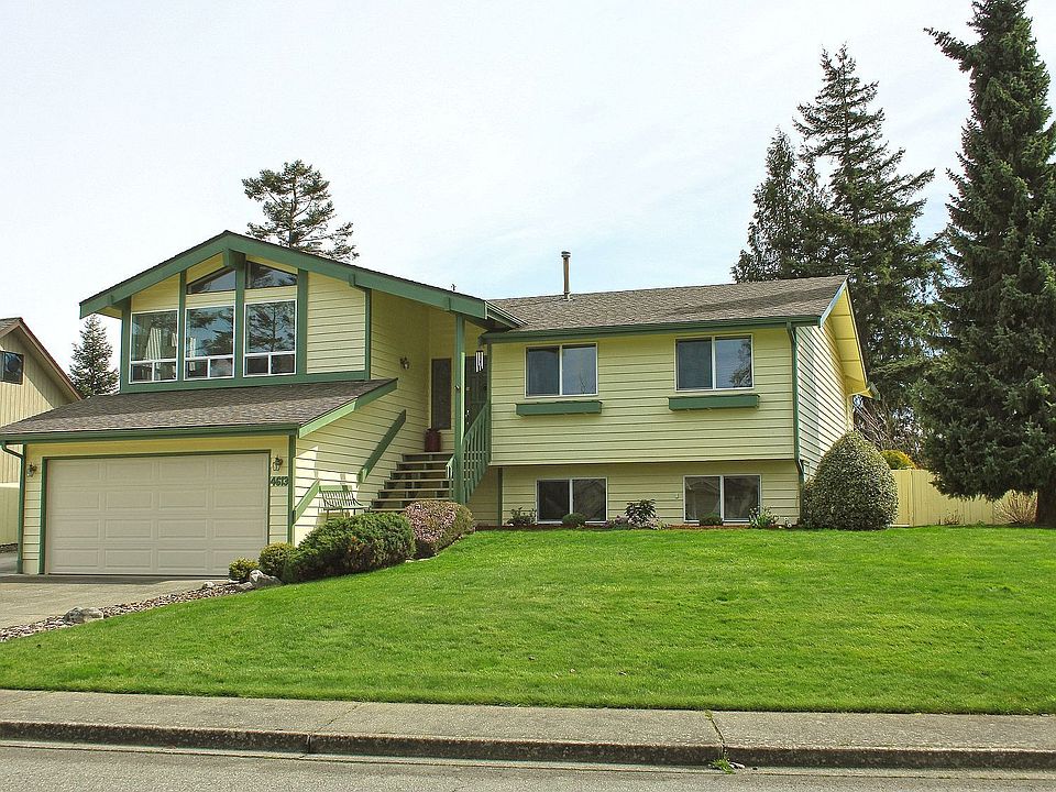 Wonderful, immaculate Clearidge home with formal entry, beautiful vaulted wood beam ceilings, hardwood floors in entry, living and dining rooms and a classic Northwest fireplace. Kitchen with french doors lead to a large deck overlooking a level, park-like backyard with garden space. Oversized master suite has a soaking tub, double sinks and double closets. Family room with a fireplace and lots of light is on the lower level and leads into a terrific, huge rec room!
