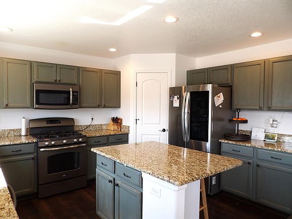 Beautifully updated customized nearly new home just minutes to Fort Carson Army Base and Peterson Air Force base. Enjoy relaxing on the huge covered front porch while gazing at unobstructed Pikes Peak views. The bright, open kitchen has stunning granite slab counters, lots of counter and storage space with chef-quality stainless steel appliances. The kitchen is open to the great room and all over easy-care gleaming wood floors with soaring ceilings and walks out to the massive fenced back yard. You'll love the wood floors in the upper hallway and upstairs laundry that has a huge folding table making the laundry chore seem easy while looking at Pikes Peak. All the bedrooms are generously sized including the master suite with its elegant five-piece master bath and huge walk in closet. The finished basement is the perfect place for gaming with a large recreation room, a huge bedroom and amazing custom full bath. There is plenty of room for hobbies and storage in the attached tandem 3 car garage. This home has it all and is move-in ready!
