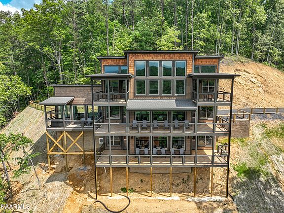 STUNNING 5BR 5BA INDOOR POOL CABIN WITH AMAZING VIEWS!!! NEW IN 2023! Completely finished and has just been placed on short-term rental. Being sold turnkey with all furniture and decorations. This is a beautiful spacious cabin, smartly designed to view into the pool room from the main level of the cabin. Views from almost every room. If you are looking for a super nice short-term rental...this, is it! Expected rental is 250K annually. The cabin features an open concept floor plan with an electric fireplace. Custom craftmanship cabinetry, granite countertops and vanities. 5 large bedrooms & baths. A second living space and game room. Great outdoor space with multiple covered decks, a hot tub, and a firepit! In addition, the location can't be beat! Situated between Gatlinburg & Pigeon Forge. Minutes to downtown Gatlinburg, Dollywood, & the National Park.