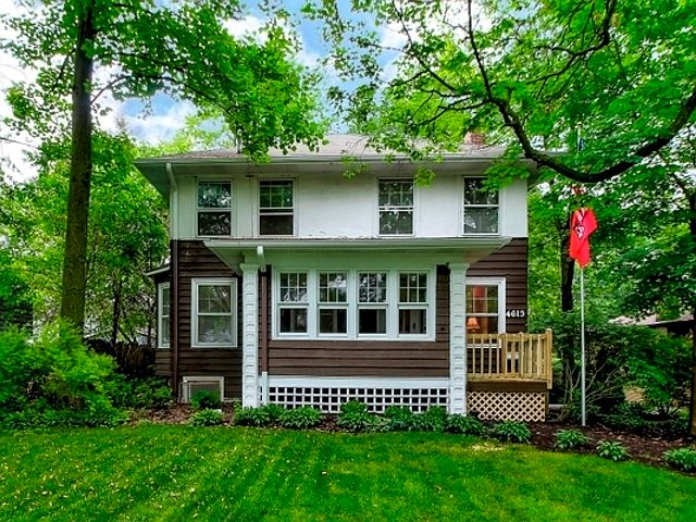Classic Four Square on historic "Highland Ave" has amazing 72X296 site offering wonderful privacy views of wooded splendor & entertainment areas. A grand ole beauty lovingly cared for over the years w/relaxing signature enclosed front porch, tall ceilings, magnificent rm sizes, intricate millwork & old world charm. Gracious Living & Dining rooms are open/inviting & great for entertaining w/abundant natural light, stately brick FP & warm oak hardwood flooring. Spacious eat-in kitchen can accompany farm-size table & flows into the rustic family room w/all new windows & elevated views of fully fenced & scenic backyard. A three-story addition was added over time includes: 2nd floor MBR, main floor Fam rm & poured Bsmt foundation. All four bedrooms are generous in size & closet space w/incredible views. Best of All-the location! Enjoy strolling into vibrant downtown DG to your fav restaurant/cafe/pub, express train, Farmers Market or Friday night car show! DGN HS just blocks away for teens.