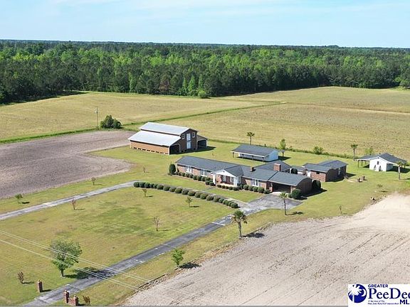 Fabulous country home in picturesque setting. This sprawling home on approximately 3.89 acres features 4 bedrooms (one bedroom can be accessed through another bedroom) and 2 baths. From the lattice brickwork double carport, steps with wrought iron railings lead to the large den with a cozy fireplace. The expansive custom kitchen has too many amenities to mention... a breakfast area, a large practical island, double ovens, etc. A separate formal dining area, a separate living room with fireplace and bay window, an office nook. Each tile bathroom features double toilets and double vanities. Closets galore. The luxurious master en suite has its own private rear entrance. Whole house generator, 2 HVAC's. PLUS a 750 sf "Granny House" complete with a remarkable kitchen and bathroom. PLUS an incredible two-story 3240 sf barn with a 960 sf shed on each side. PLUS a 615 sf block building for workshop/storage with a 385 sf shed on each side. PLUS a 334 sf storage/playhouse with a 244 sf shed on each side. Approximately 60 miles from Myrtle Beach.