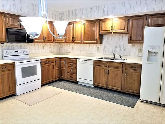 CLEANED, PAINTED AND READY. Private Country Lake Estates 2 bedroom, 2 bathroom, 2 car garage, 1,452 sf condominium. Features brick wood-burning fireplace, large eat-in kitchen with new light fixture and separate dining room with beautiful chandelier, master suite, tiled entry, laundry room, and private patio. Cleaned, freshly painted in warm gray throughout, curtains dry-cleaned, and carpet cleaned to make it ready for you to move right into. All electric. Appliances include refrigerator, stove, dishwasher, microwave, freezer, washer and dryer. HOA $154 monthly covers maintenance of condo exterior, landscaping, common areas, and snow removal. Beautiful neighborhood with two ponds, decks and seating to enjoy the fountains, fish and ducks. IMMEDIATE POSSESSION.
