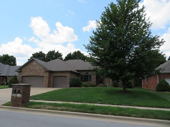VERY CLEAN, BEAUTIFUL BRICK, 3 BEDROOM, 2 1/5 BATH, 3 CAR GARAGE APPROX 2197 SQ FT HOME SITTING ON APPROX LOT SIZE .26 ACRE. STAINLESS KITCHEN AIDE DISHWASHER, SAMSUNG FLATTOP ELECT RANGE BOTH NEW 2014, DUAL SINKS, JETTED TUB, WALK IN SHOWER, HIS & HER WALK IN CLOSETS IN MASTER BEDROOM. FORMAL DINING OR COULD BE USED AS OFFICE WITH PLENTY OF WINDOWS. KITCHEN/DINING COMBO WITH WALK OUT COVERED PATIO W/BLINDS TO BLOCK THE AFTERNOON SUN, ALSO CEILING FAN TO ENJOY YOUR MORNING COFFEE OR JUST A RELAXING AFTERNOON WATCHING THE BIRDS. WALK IN CLOSETS IN EACH BEDROOM, GAS FIREPLACE IN LIVING, BEAUTIFUL OAK TRIM, HARDWOOD, CARPET & TILE FLOORING, BLINDS ON ALL WINDOWS, ANDERSON ROLL OUT WINDOWS, PLENTY OF CABINETS, CLOSET SPACE, BUILT IN IRONING BOARD, ADDITIONAL FEATURE MISSOURI STORM SHELTER IN GARAGE. PRIVACY FENCED IN BACKYARD, YARD LIGHTS INSTALLED 2019, DUSK TO DAWN PORCH LIGHT, NEW ROOF 2019, CENTRAL HEAT/AIR, SPRINKLER SYSTEM, HOA FEE $380 YEAR INCLUDES TRASH PICKUP TWICE A WEEK, POOL AND TENNIS COURT. 2019 TAXES $2180.55