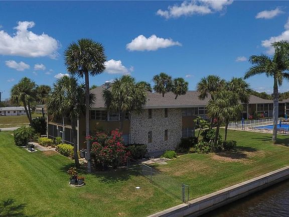 Can't beat gulf access waterfront living at this price!! First floor corner unit on the beautiful wide Rubicon Canal!! Vintage flair two bedroom two bath condo -- - close to canal and great view of pool. Spacious floor plan with original kitchen, open floor plan for formal dining and living room. Spacious master bedroom with walk in closet; master bath has tiled shower; nice size guest bedroom and vintage purple guest bathroom!! New ac in 2017 Relax in your own screened lanai -great place to sit and savor the views. Community laundry facilities. Restrictions allow for one small pet with approval and 30 day minimum leasing term. Professionally managed -- roof was recently replace; pool refinished and pool deck redone. Convenient location to downtown Cape Coral or up Country club to veterans. Ready to update or enjoy the vintage appeal. Furniture is negotiable - easy to show --- no need to endure the cold winters anymore!!