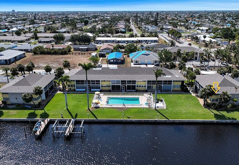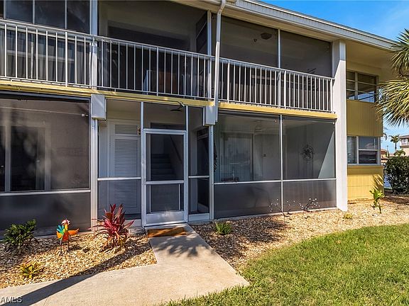 Rare Opportunity to get a totally renovated turnkey condo located on the Rubicon canal that is 200 feet wide. Gorgeous southern views and move in ready. Renovated kitchen has a great open layout with stainless appliances, white shaker cabinets, granite, new flooring and baseboards throughout. The condo is set up with a Split bedroom floorplan layout which is perfect for guests. Light and bright with windows on 3 sides of the unit. The Florida room/screened lanai is a perfect place to drink your coffee or cocktails and watch sunsets and the dolphins as they swim in the canal. The master BR features a private BA, large closet and views of the canal as well. The condo has a huge closet allowing for plenty of storage space. Enjoy a swim in the large heated pool for your enjoyment overlooking the canal. The complex is in the process of getting a new roofs, carport, landscaping & screen repairs. All this & a great location near restaurants, shopping & Yacht Club &.Bunche Beach is 11 mi away! Another BIG PLUS, FREE dock space on the canal is available! Come see why you should be calling this beautiful move in ready condo your next home. Agents please read confidential remarks