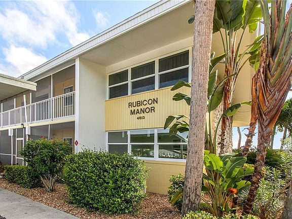 Charming GULF ACCESS condo ON EXTRA WIDE RUBICON CANAL. Enjoy CROSS VENTILATION in this unit with spectacular views from the SCREENED BALCONY. Building has just been freshly painted June 2020 and the docks have been recently replaced along with resurfacing of the pool in 2018 and roof replaced in 2017. New hot water heater in 2018, patio rescreened in Oct 2017, new kitchen plumbing in 2017 along with new electrical outlets and faucet as well. FRONT AND REAR ENTRY STAIRS making easy access to either side of the building. FULLY FURNISHED AND TASTEFULLY DECORATED CONDO with sleeper sofa giving you options to sleep at least 4. Great for empty nesters, young professionals or investors. Fabulous location downtown within a few blocks of great dining, entertainment and shopping. Very little available in this area so don't miss this opportunity as it's sure not to last long.