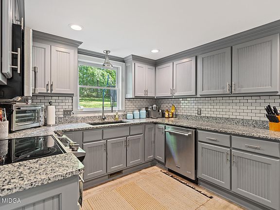 Gorgeous!! All the updates have been done and this beautiful home is move in ready. Kitchen has subway tile, granite and stainless appliances. Beautiful new floors throughout. Two large living areas one with a fireplace. Large dining room and also a breakfast area. This home offers 4 bedrooms and 2 full baths and a half bath. Master Bedroom has its own balcony to enjoy your morning coffee or a glass of wine to end the day. Great back yard for entertaining. Large patio with bar area. Work room off back of garage.
