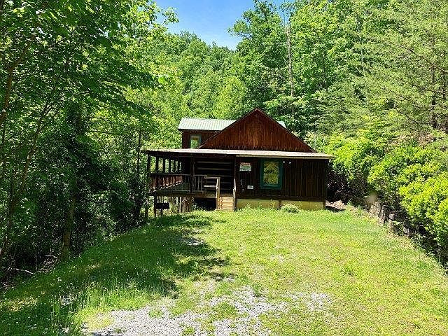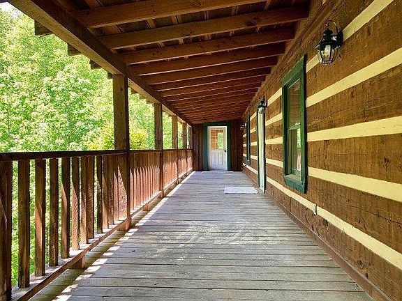 Log and cedar siding with balconies and covered decking. Many updates including - roof, carpet, tile and new light fixtures! Privacy and nature abound here! Make this your own secluded retreat!