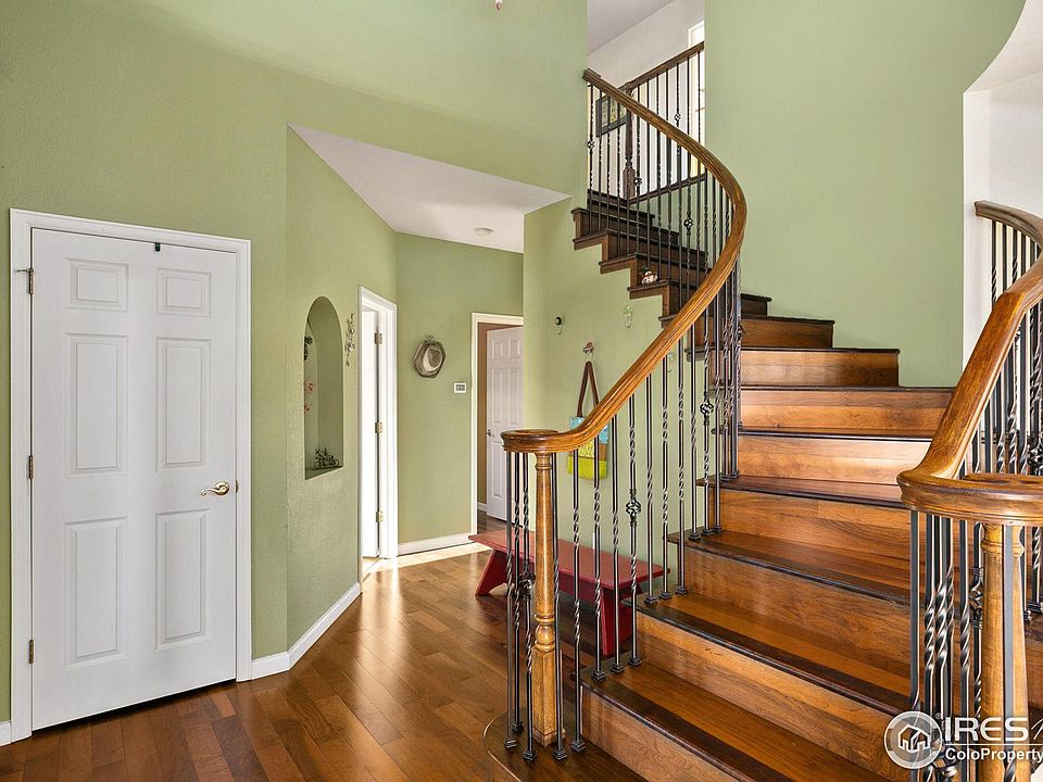 Impeccably maintained energy-efficient custom home on 0.3 acres with fully owned solar panels. This 3-bed home also has an additional loft space upstairs for a home office or reading nook. Home features a fully remodeled kitchen with solid wood extra-tall shaker cabinets, granite countertops, solid wood floating shelves, all stainless appliances including a gas range and has built-in pullouts in cabinets. This home is bright with lots of natural light, vaulted ceilings, engineered hardwood flooring throughout main level, and a cozy gas fireplace in the family room. Formal primary bedroom with walk-in closet and updated bathrooms throughout. Adding to this home's efficiency is the updated whole house fan, upgraded blown-in insulation, brand new furnace and newer water heater, electric vehicle charger, and solid construction. Outside you'll note the inviting covered front entry, immense flagstone patio in the backyard with gas line for grilling or firepit, xeriscape landscaping, raised garden beds, and compost bins. This yard plays host to currants, grapes, raspberries and blackberries when in season. Neighborhood is moments from Cathy Fromme Prairie trail and the recently-built Fort Collins Montessori School around the corner in addition to shopping very nearby. Come see this beautiful home today!