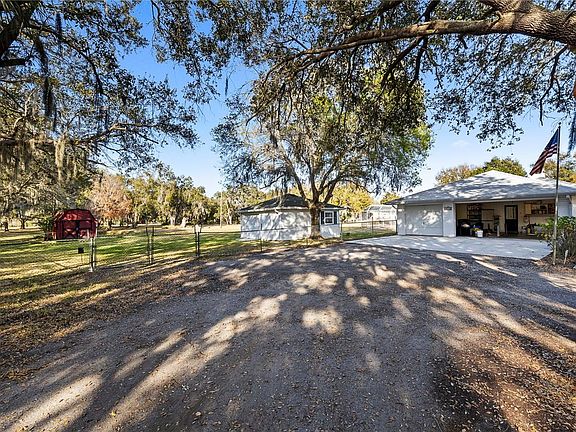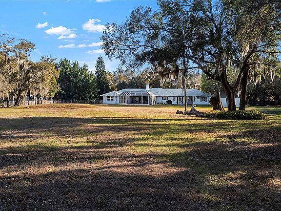 Country Bliss is the feeling from the moment you arrive! You will be amazed by this magnificent 3 Bed, 2 Bath, with an Office/Den Country Home. You will have plenty of room where you can bring your horses and toys to enjoy this peaceful "Old Florida" setting situated on 3.4 acres. This Country Estate includes not only an oversized 3-car garage but also an additional 1 car garage with a workshop. The interior floor plan welcomes you to the very large kitchen with island, separate dining, sitting, and living rooms, and a two-sided wood burning fireplace. The master bedroom has a private office/den that overlooks the beautiful back yard. There is a screened breeze way between the garage and kitchen. Out the back door of kitchen, is an open patio that is perfect for BBQ Grilling or to fire up that smoker! As a bonus you can enjoy all this beautiful property with your favorite beverages, family, and friends while relaxing in your large screened in lanai. As you walk through the back yard towards your own farm pond, you'll run into a 10x20 red barn which has unlimited uses. The property is completely fenced to keep your animals from venturing to far but plenty of room to roam!! You will appreciate the strategically placed umbrella sunshade of oak trees and seasonal flowering foliage surrounding the home. You'll also revile in country living while being close to town with all the amenities including stores, shops, restaurants, golf courses, and more. If the smell of the ocean and sand between your toes is what you crave then the famous gulf beaches are just a short drive away. Home has been updated with a new roof (2015); A/C (2019); 2 Hot Water Heaters (2017) and new septic system (2016) with an access for RV pump out station. Come see this property today! County living is waiting for you!