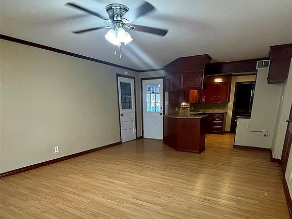Welcome home to this lovely 2-bedroom residence featuring a bright sunroom that can serve as a addition living space, playroom, or home office. Large windows fill the space with natural light, creating a warm and inviting atmosphere throughout.The kitchen boasts granite countertops, stainless steel appliances, and ample cabinet space perfect for anyone who loves to cook. Original hardwood floors add timeless charm, while the quaint front porch is ideal for relaxing mornings with coffee. Step outside to enjoy the spacious fenced backyard shaded by mature pecan trees great for outdoor entertaining or peaceful evenings under the stars. A single-car garage provides convenient parking and additional storage.This home is move-in ready and available for immediate occupancy. Don't miss the chance to make it yours!