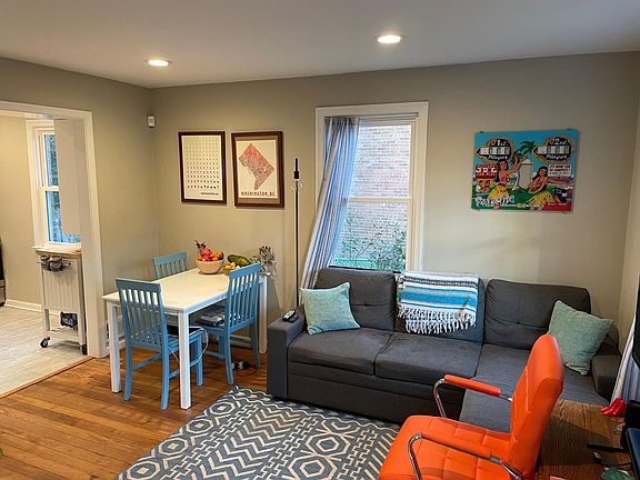 Recently renovated home combines function, comfort, and access to downtown. This 800-sq. ft. house has original hardwood floors, a modern kitchen with gas stove, and a subway-tiled bathroom. A sunny living room greets you as you enter and the kitchen includes ample storage. Also on the first floor: new, in-unit washer & dryer and access to the back deck. Upstairs you'll find a large south-facing bedroom with 2 closets and another smaller bedroom which can serve as an office. The full bathroom has everything you need. The house has off-street parking in the front and the Blue Line Metro is 3 blocks away! A private, fenced backyard with deck, picnic table, and firepit provides a peaceful retreat or a great space to grill and entertain. Also, energy is provided to the house by newly installed solar panels on the roof. Situated on a quiet, residential street with great neighbors and access to the Fort Dupont Park system, this spot is a great value at $1850! This property provides the opportunity to rent a complete house (with outdoor space) for less than you would pay for a studio apartment. Available April 1. Owner pays electricity. Renter pays water, gas, and all other utilities. No smoking allowed.