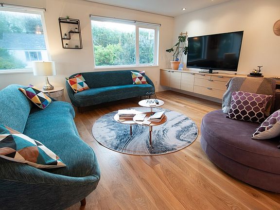 Experience the unique charm of this architect-designed gem, perfectly located in Seattle's vibrant neighborhoods. This spacious home, known as the "Snow House," is a testament to high-design urban living, featuring a gourmet kitchen and multiple work areas. The main level, one floor up from the ground, offers an open living space, while the upper level, two floors up, houses three bedrooms, including a Queen Master with an en-suite bathroom, and offers stunning city views. Enjoy the rooftop deck and sauna, with views of the Space Needle and Lake Union. The home boasts an exquisite design with a gourmet kitchen, perfect for preparing sumptuous meals, although the proximity to world-class restaurants might tempt you to dine out. The main floor provides ample space for gathering, while private rooms upstairs ensure restful retreats. The kitchen is fully equipped, catering to all your culinary needs. The property welcomes one dog with a pet contract, a $75 pet cleaning fee, and a $500 pet deposit if booked directly. Security cameras are installed outside the property, and guests are requested to inform in advance about their pet. The rooftop sauna offers a unique relaxation experience, although the hot tub is currently not operational. Ideally situated between Seattle's most interesting neighborhoods, this home is a walker's paradise with a Walk Score of 92 out of 100. Enjoy easy access to coffee shops, restaurants, parks, and shopping. Direct bus routes connect you to the UW Medical Center, the University District, and downtown Seattle. Free street parking is available for guests with vehicles. The property is not ideal for young children due to open staircases and roof access. Guests are advised to tread lightly as sounds can be heard from the separate apartment on the ground floor. Quiet hours are from 10 PM to 8 AM, and no parties are allowed. The home is adjacent to a busy street, which may result in urban city noise, especially during rush hour. A white noise generator, eye masks, and ear plugs are available upon request for light sleepers. Guests are advised not to adjust the thermostats, as the home features radiant heating. Instead, the Heat Inverter/Air Conditioner in the living room can be used for faster temperature changes. The rooftop sauna has specific usage guidelines to ensure safety, and guests assume all risks associated with its use. The home features multiple work areas, making it ideal for remote work. However, a laptop computer is not included.