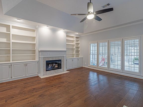 This spacious 4 bed, 3.5 bath home with split floorplan is your private hideaway! Beautifully landscaped wooded lot at the end of a cul-de-sac, just minutes away from dining, grocery, schools, and more! Living area features hardwood floors and built-in shelving around an instant-on gas fireplace. Granite countertops in kitchen overlooks living room and breakfast nook. Master bedroom is large, with an incredible en suite bath! Stylish soaking tub with bespoke lighting will melt away your stress. Additional bedrooms are generously sized; one has a separate full bath, and the others are adjoined by a jack-and-jill style bath with separate sinks. Enjoy work or play in the heated and cooled sunporch! You won't want to miss this one, add it to your MUST SEE list now!